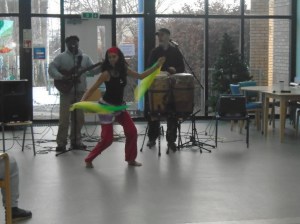 So far this year we’ve had some great acts for Thursday Live. In January we had the band Ubuntu Vibes come to Cherry Road for the very first time. They were accompanied by Andy Cooke a musician. They performed an African story through music, dance and speech. They interacted with our clients very well, they were humorous and lively. We would welcome them back to the centre anytime.