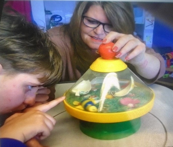 Liz explained she loves her job “I feel very privileged to be part of making people’s lives better, more enjoyable and helping people to learn.” Cherry Road felt a safe place to be during the pandemic. Staff and service users really looked after each other. Liz is always open to new ideas, assessing the service and getting feedback from us and our families to inform future plans for Cherry Road. I asked Liz if she had a special moment to share. She spoke of the success of the summer programme and a special moment when one of our clients reached out for the first time to play the strings of the violin. Liz said it was very emotional and brought a tear to her eye.